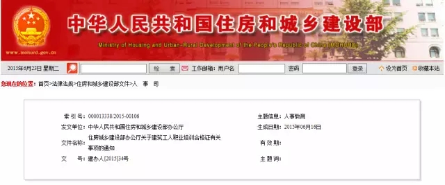 - 住建部:关于建筑工人职业培训合格证有关事项的通知